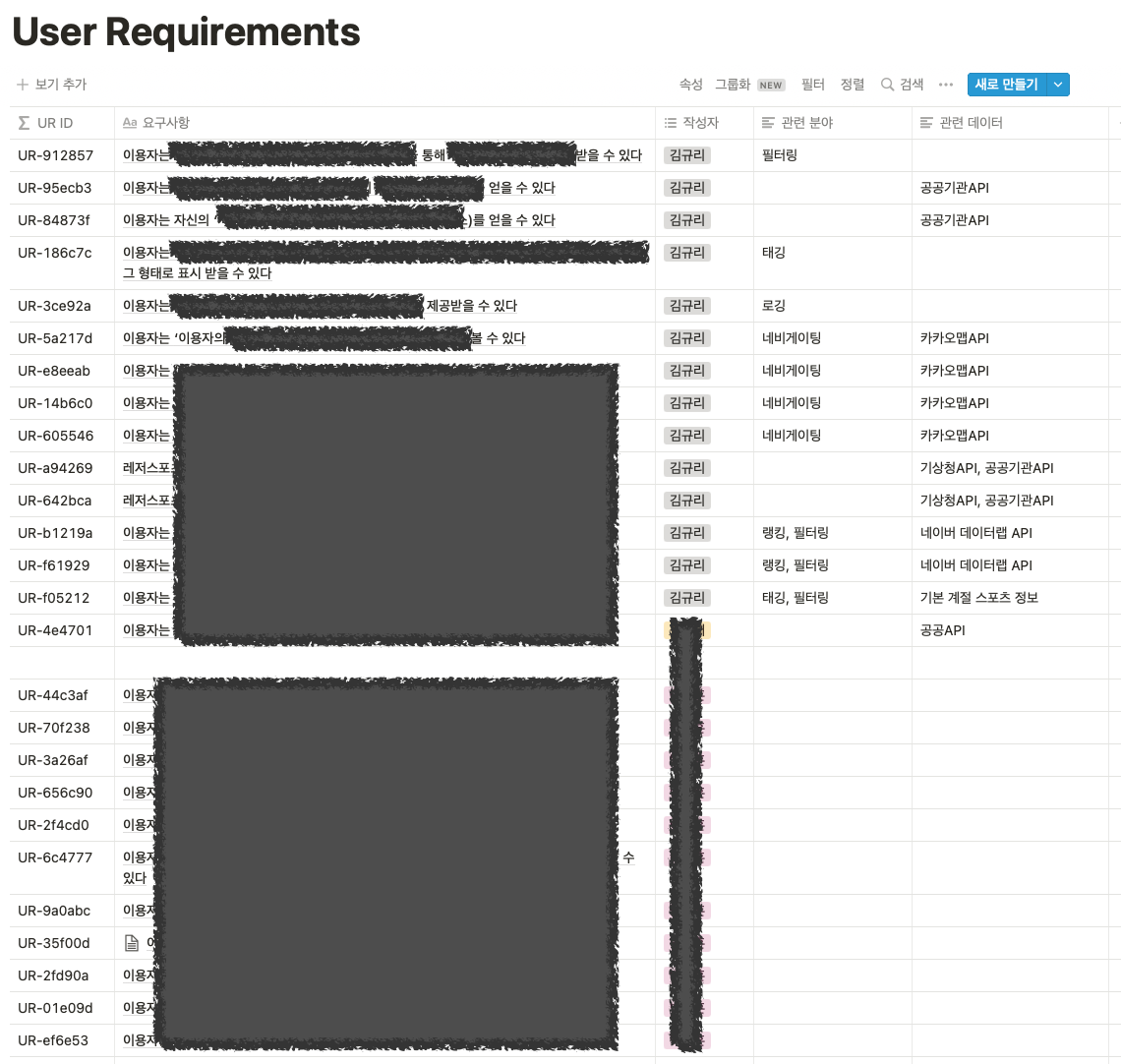 주 아이디어는 정해졌다. 이제 여기서부터 '기획'이라는 단계에서 무엇을 고려해야하는지, 이 가장 기초적인 단계가 왜이렇게 중요하며 길어지게 되는지 이해하는 때였다.우리는 다음 회의때까지 requirement를 작성하기로 했다. 아이디어가 정해진 걸로 끝나는 게 아니라, 이 아이디어 안에서 고객에게 어떤 게 필요하고, 우리는 그 요구에 대한 어떤 걸 할 것인지 user/system requirement를 최대한 작성하는 거다.