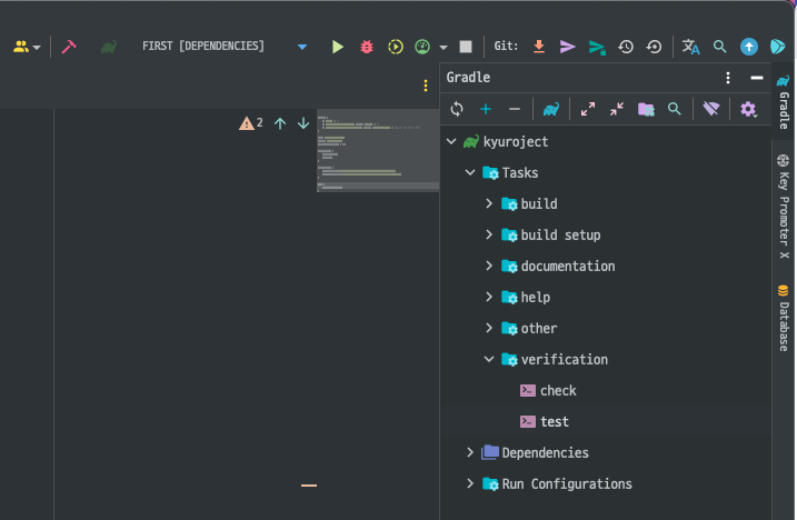 - 테스트: (인텔리제이 창 우측) Gradle탭 > task > verification > test
