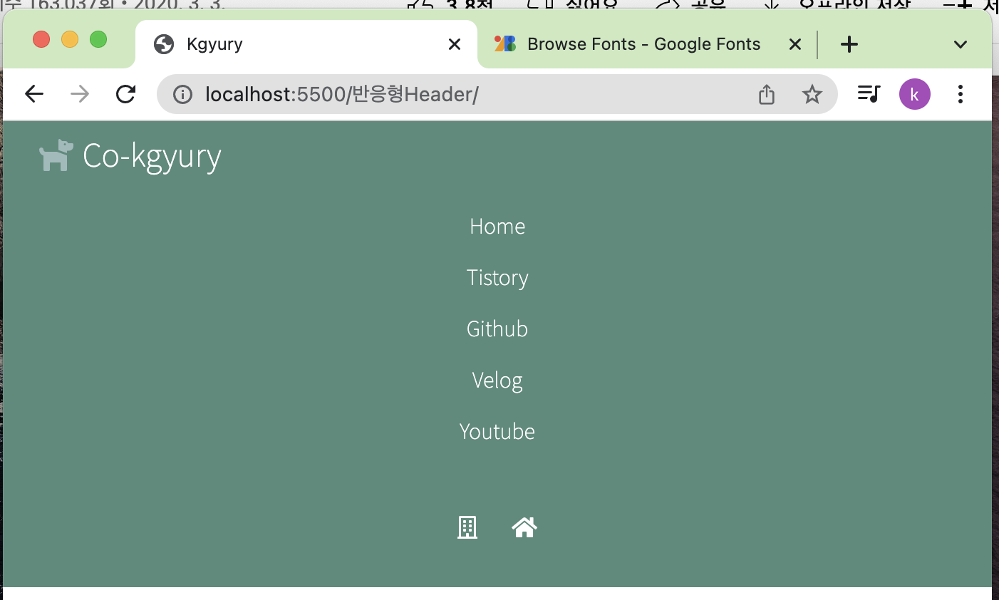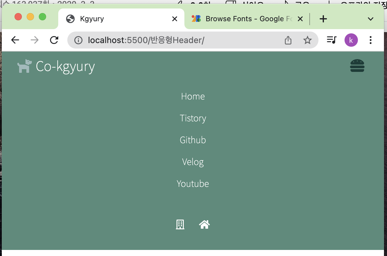 - 얘를 함으로써 메뉴 영역만 중앙 배열이 됨 (나는 최상단 Co-kgyury는 좌측 배열 시키고 싶거든. )