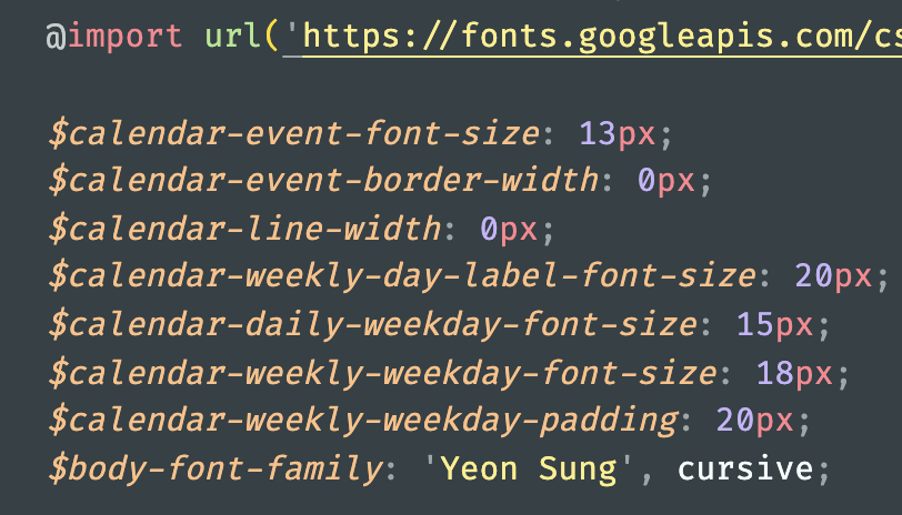 이후, 앞서 지정해놓은 경로에서 SASS 변수에 원하는 커스텀 내용을 적으면 된다.