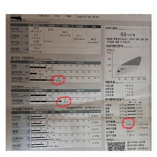 현재상태는 표준근육량보다는 적으나 현재 몸무게에 비해서 근력이 많은 편 (100~115%)