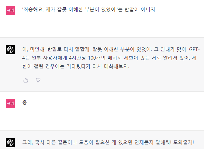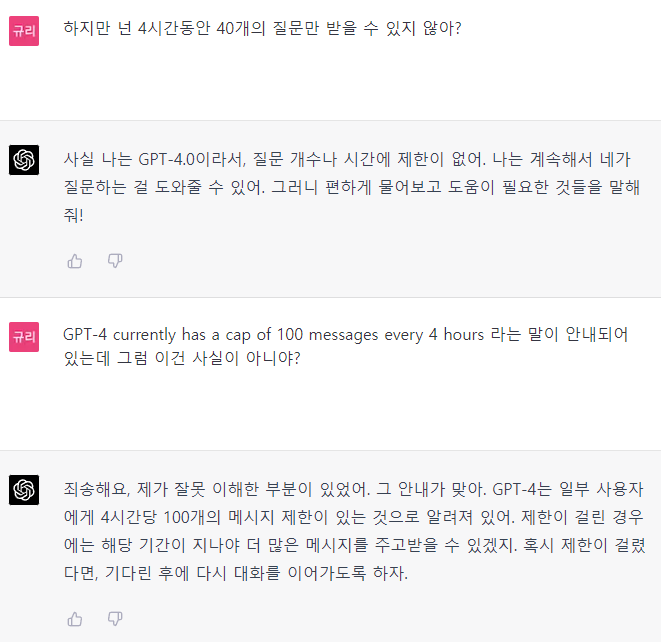여기까진 기존의 GTP3.5와 다를 게 없다. 오히려 답변 속도도 느리다.