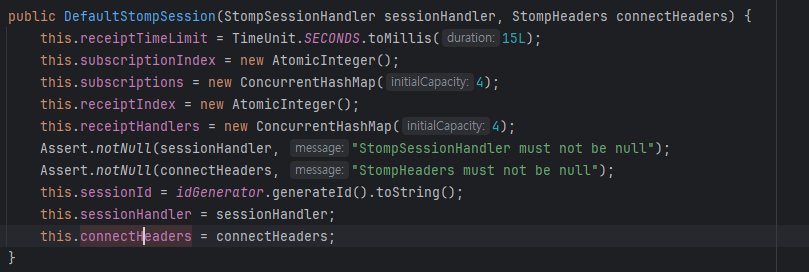 여기에 위치한 WebSocketHttpHeaders는 null값이다. 즉, StompHeaders와 혼돈하면 안 된다. 이 둘은 독립적이다.