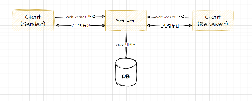 송신은 서버에 찌르면 끝났다. 서버는 그럼 해당 요청에 대해 반응하여 DB에 메시지를 저장하고 Client에게 메시지를 전송시킬 예정이다.