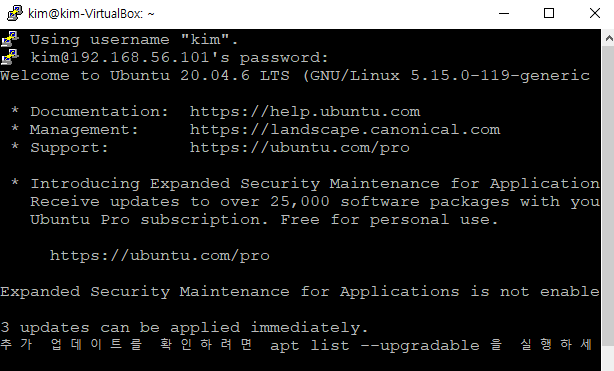기존 ubuntu에 접속한 hsot네임을 포함한 IP주소를 작성한 뒤 접근할 수 있는지 확인한다