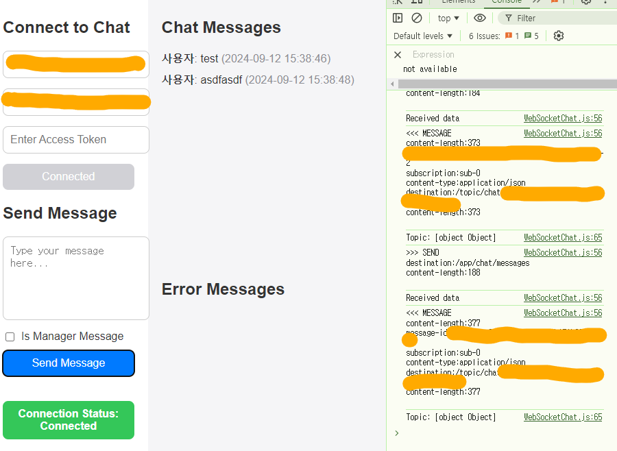 이후 간이로 만든 클라이언트로 접근해보면 접속과 반환, DB저장이 잘 되어있다.