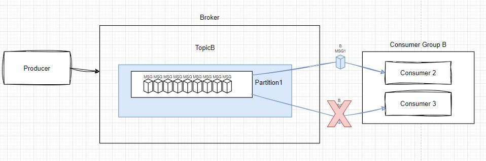 그림에서 ConsumerGroup B의 경우, 각각의 내부 소비자가 서로 다른 파티션으로 분배된 메시지를 읽는 순서는 최초의 메시지 생성 순서와 동일하지 않을 수 있다는 점이다. 즉 병렬소비가 일어나면서 순서가 보장되지 않게되었단 말이다.