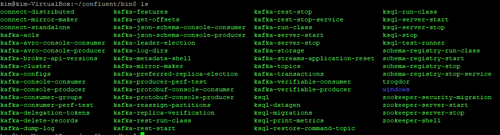 bin 경로 내로 들어가면 카프카 기동 명령어 역할을 하는 .sh 파일들을 볼 수 있다