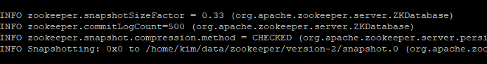 이후 zookeeper_start.sh 명령어를 수행해보면 아까 만든 data/ 경로가 적용되는 로그를 만날 수 있다