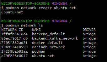 현재 podman을 이용중이기에, 내 환경 기준으로 아래와 같이 삭제 후 네트워크를 설정해주는 커맨드를 수행시켰다