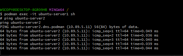 podman run -dit --name ubuntu-server2 --cap-add=NET_RAW --network my-network ubuntu:latest