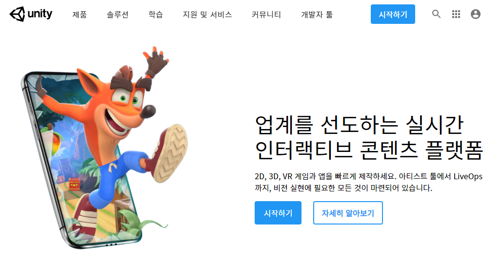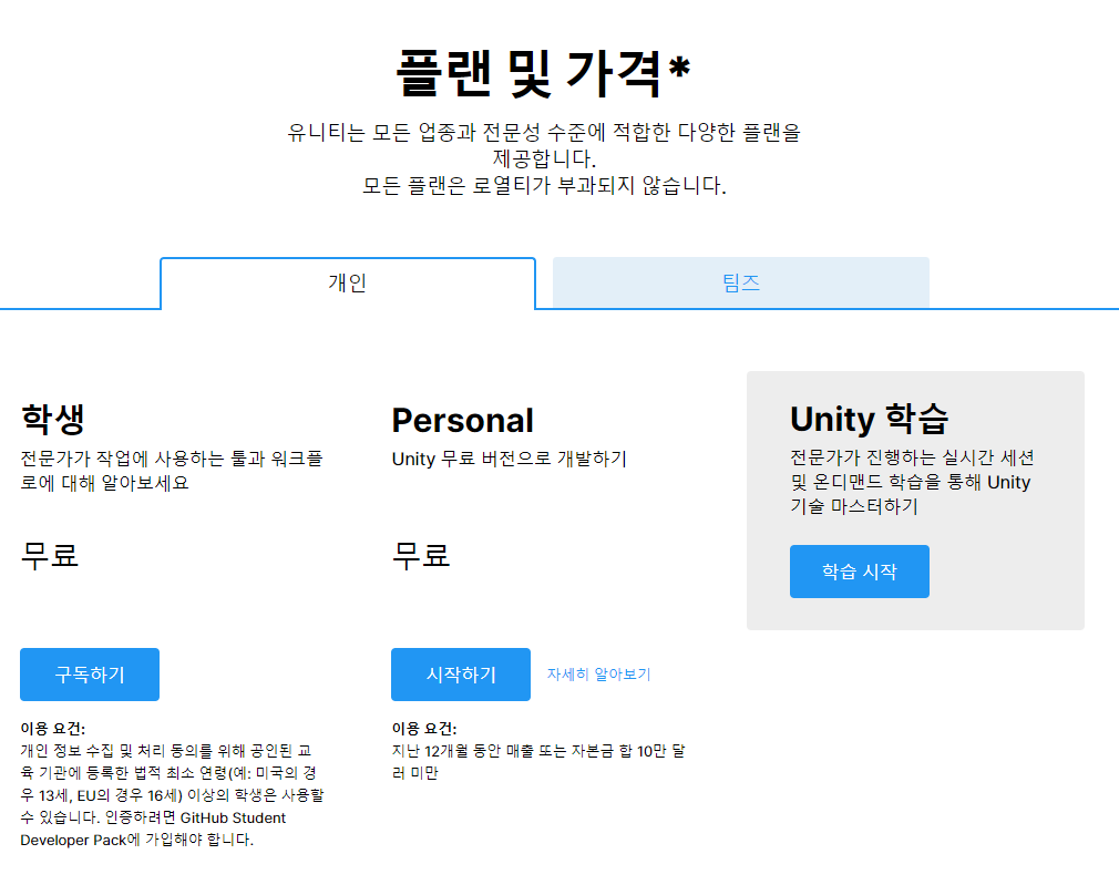 unity(클릭이동)에 접속하고, 개인(무료)버전을 설치하자.