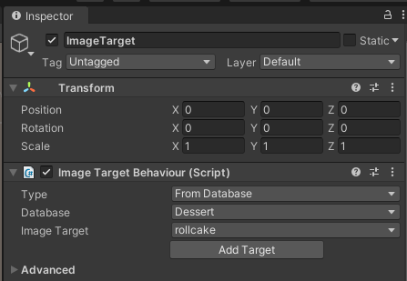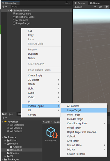 [계층뷰] > [마우스 우클릭, import taget] > [Type, Database, Image Target] 알맞게 선택