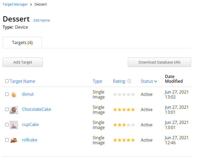 #6. Vuforia의 Target manager, 2D 데이터베이스 추가