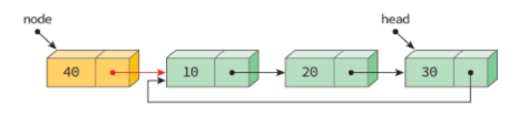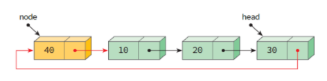 기존 원형 연결리스트에서 head의 위치가 마지막 노드를 가리키도록 바꼈다. 이것이 일반적인 원형 연결리스트 형태이며, 다음과 같은 연결구조를 가진다.