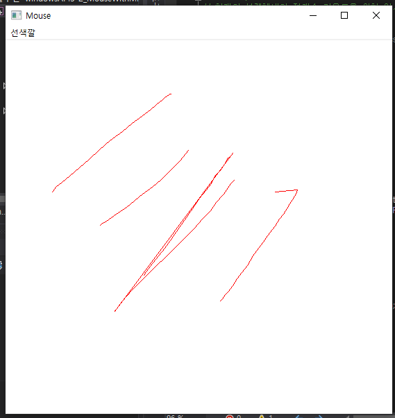 선을 그리고, 선을 그려낸 윈도우 창을 흔들다 보면 선 객체들의 색상이 날라가는 문제가 발생한다.