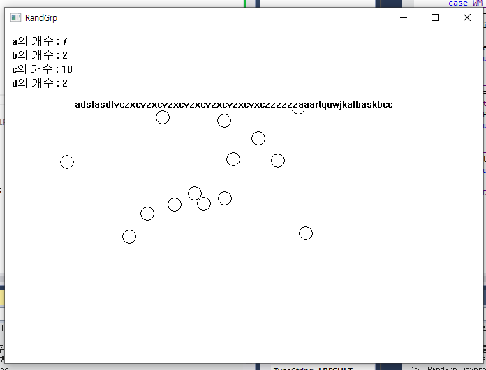 wsprintf(buf, TEXT("%c의 개수 ; %d"), tp->ch, iCount);