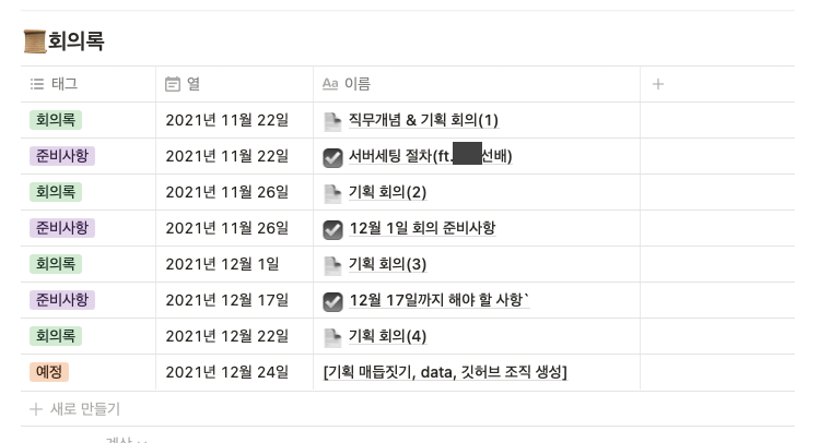 노션에 기록한 회의록을 보면 11월 22일부터 어제인 12월 23일 까지 기획회의만 4번이다.