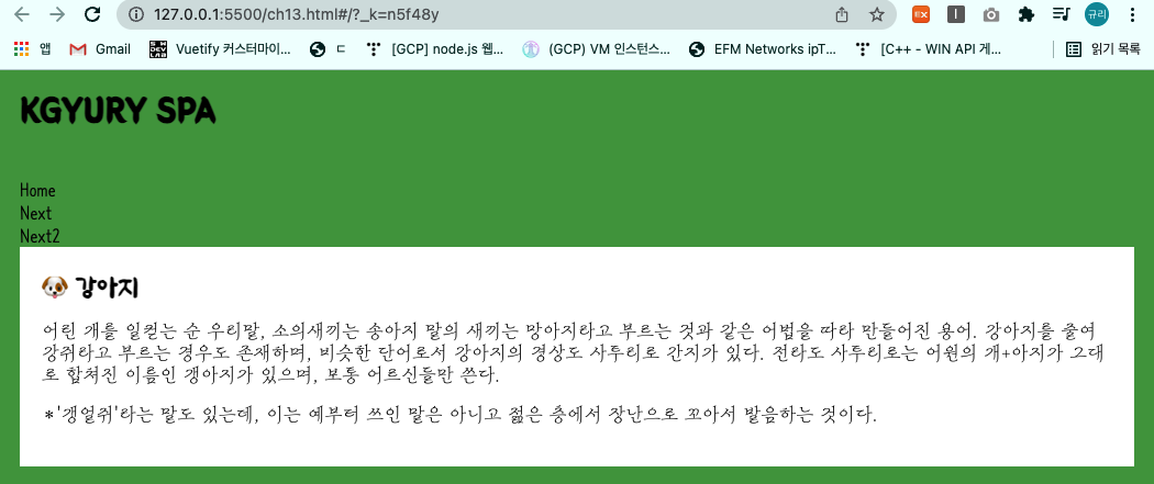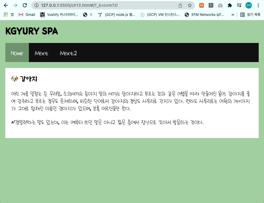 SPA에선 완전히 새로운 페이지가 로딩될 일이 없다. 동일한 페이지 안에서 인라인으로 뷰가 로딩된다