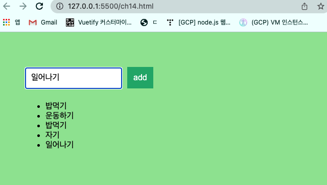 - 이벤트와 이벤트 핸들러를 이용하여 사용자가 제출한 텍스트를 정확히 배열에 추가해야 함