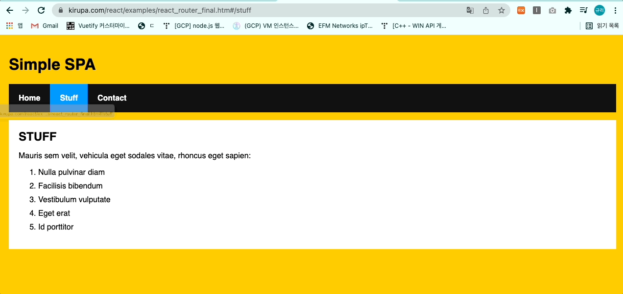 SPA에선 완전히 새로운 페이지가 로딩될 일이 없다. 동일한 페이지 안에서 인라인으로 뷰가 로딩된다